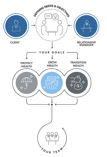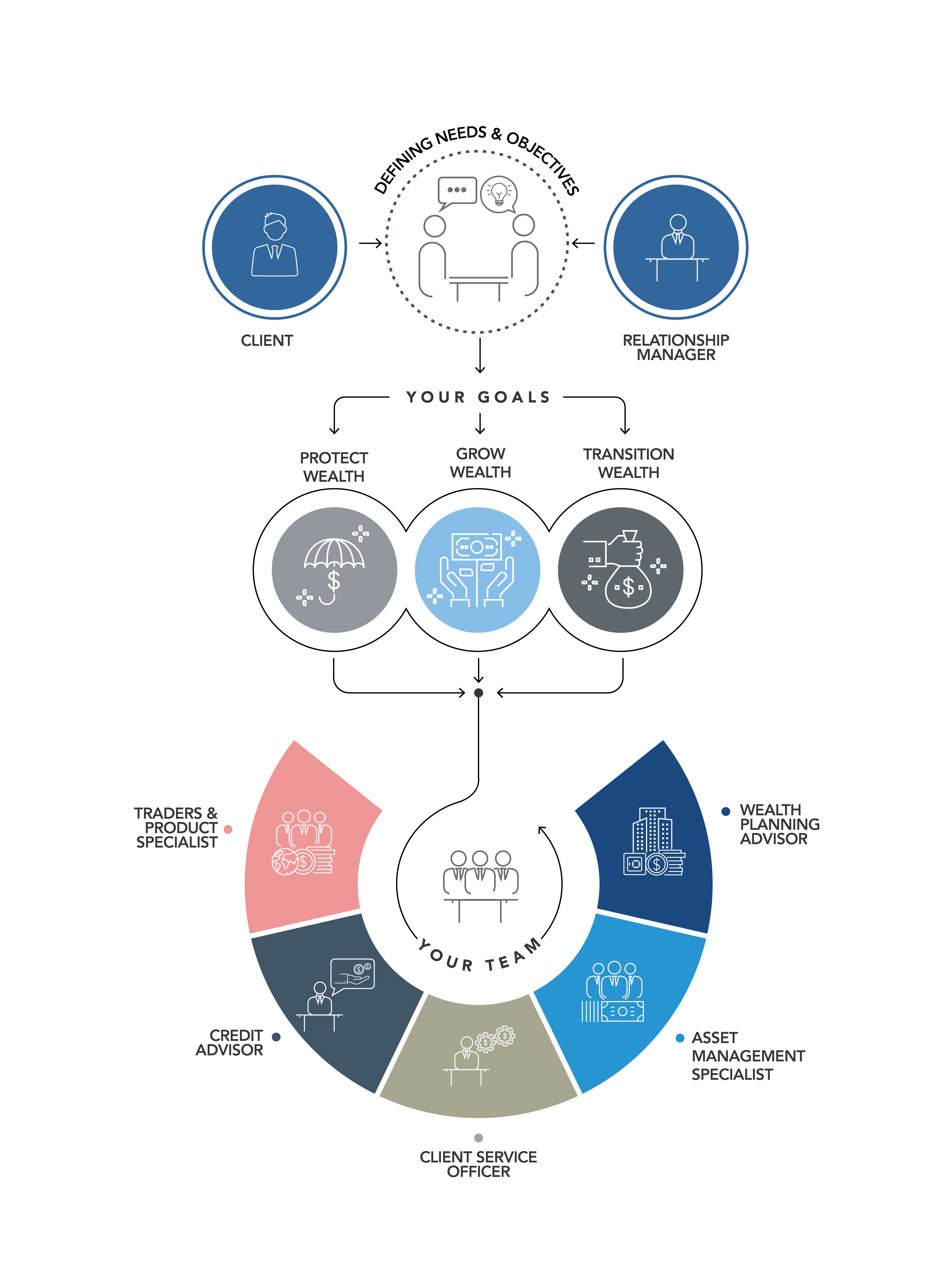 From asset management and M&A advice through to day-to-day banking and complex wealth structuring, we can provide solutions to help you achieve your goals. Whether your priority is to use your assets to grow your wealth, protect it or somewhere in between, your Relationship Manager will work with you to achieve your own individual goals.